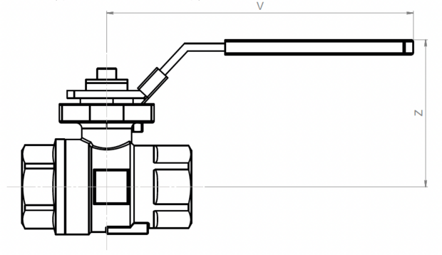 Kogelkraan, 2 weg, Hand bediend ,G3/4 - DN20, VS 2 PZ. ,RVS,ISO 7/1, C/L L430H405