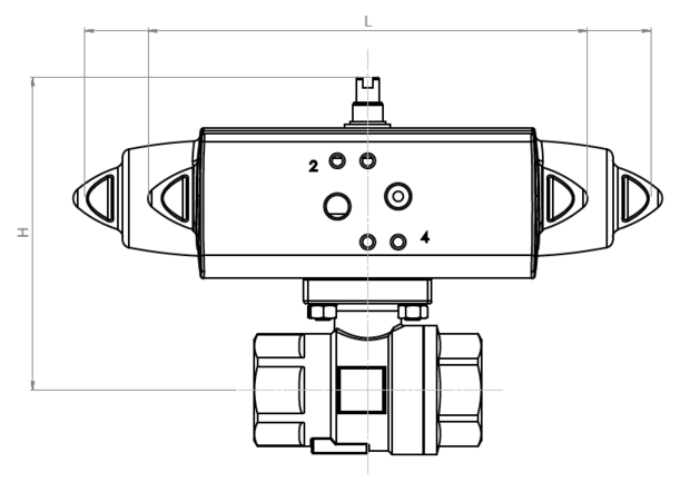 Kogelkraan, 2 weg, Pneumatisch bediend ,G3/4 - DN20, VS 2 PZ. ,RVS,ISO 7/1, + ,DA,DAN15 D430H405