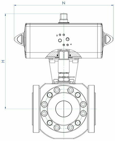 MAGNUM Split Wafer 3 ways 4 seals,3 weg, carbon steel, LF2 Ball Valve- valve,pneumatisch bediend,DA, - L - ,L port,G1 1/4 - DN32 / pn 16-40,16,