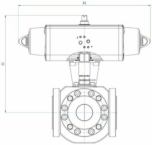 MAGNUM Split Wafer 3 ways 4 seals,3 weg, carbon steel, LF2 Ball Valve- valve,pneumatisch bediend,SR, - T - ,t port,G3/4 - DN20 / pn 16-40,16,