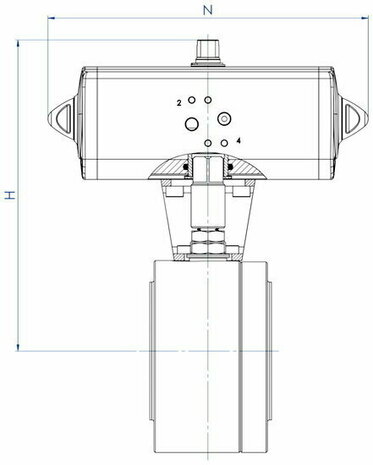 Magnum Split Wafer ,rvs , Ball Valve- valve,pneumatisch bediend,DA, - G1 1/2 - DN40 / ANSI 150
