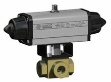 Drieweg stalen kogelkraan (L-boring) met enkelwerkende pneumatische aandrijving (SR). Leverbaar: 3/8'' - 1''.