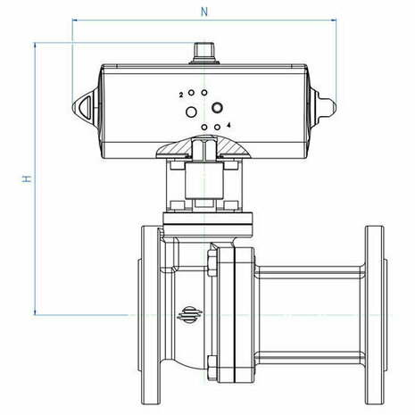 Prochemie 60 Stark Wafer ,RVS , cf8m, Ball Valve-,Pneumatisch Bediend, DA, - G2 - DN50 / pn 16-40,16,