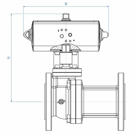 Prochemie 60 Stark Wafer ,rvs , cf8m, Ball Valve-,Pneumatisch Bediend, DA, - G2 - DN65 / PN 16