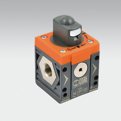 3/2-weg afsluiter NCMet handmatige, pneumatische of elektro-pneumatische aansturing.