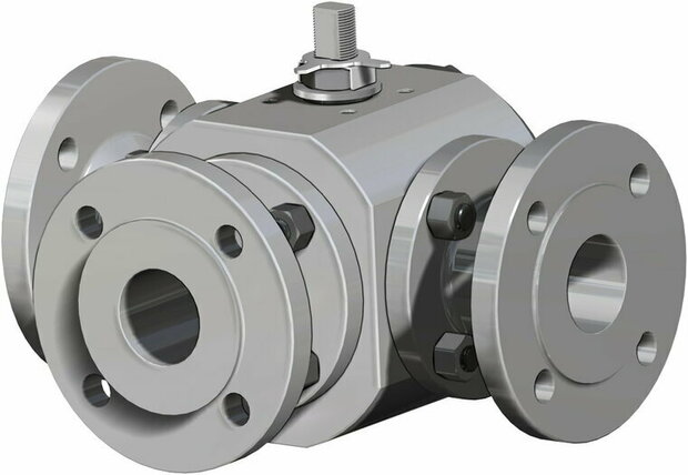 Thor Split Body 3 ways 4 seals,3 weg, ,rvs , Ball Valve-,hand bediend, - L - ,L port,G2 1/2 - DN65 / ANSI 150