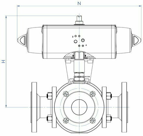 Thor Split Body 3 ways 4 seals,3 weg, carbon steel, A105 Ball Valve- valve,pneumatisch bediend,SR, - L - ,L Port,G2 1/2 - DN65 / ANSI 150