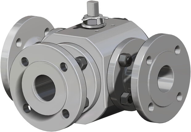 Thor Split Body 3 ways 4 seals,3 weg, ,rvs , Ball Valve-,hand bediend, - T - ,t port,G3 - DN80 / ANSI 150