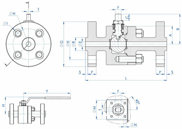 Thor Split Body ,rvs , Ball Valve-,hand bediend, - G1 - DN25 / ANSI 900-1500