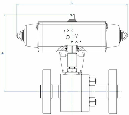 Thor Split Body carbon steel, A105 Ball Valve- valve,pneumatisch bediend,SR, - G1 - DN25 / ANSI 900-1500