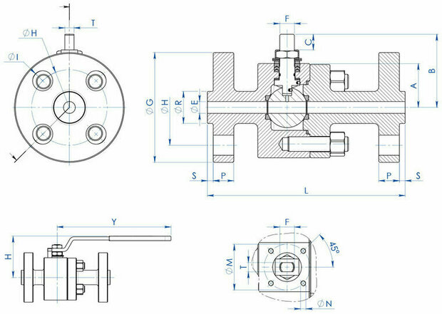 Thor Split Body carbon steel, LF2 Ball Valve-,free shaft, - G1 - DN25 / ANSI 900-1500