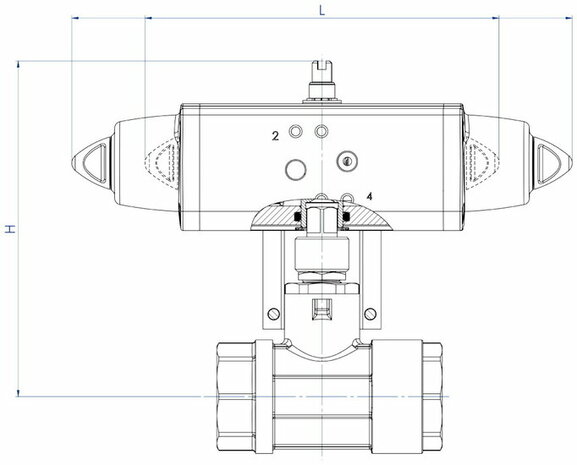 V113 ,Messing, Ball Valve- valve,pneumatisch bediend,SR, - G1/2 - DN15 / PN 210