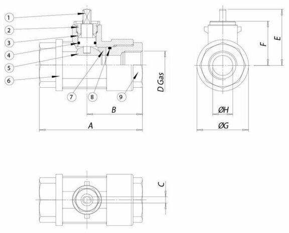 V113 ,Messing, Ball Valve-,hand bediend, - G1 - DN25 / PN 210