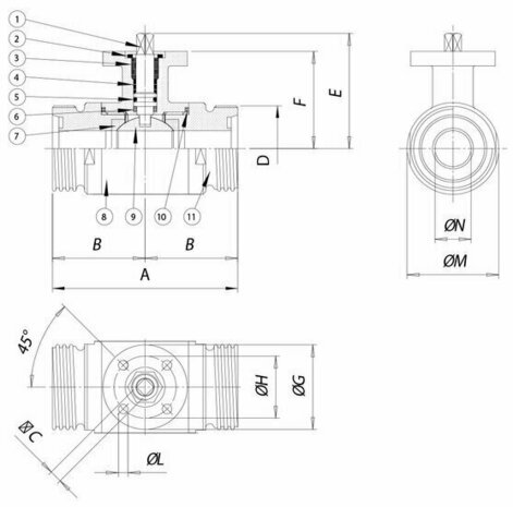 V434 ,rvs ,din 11851, Ball Valve-,free shaft, - G3/4 - DN20 ,63,Bar/ pn 63,