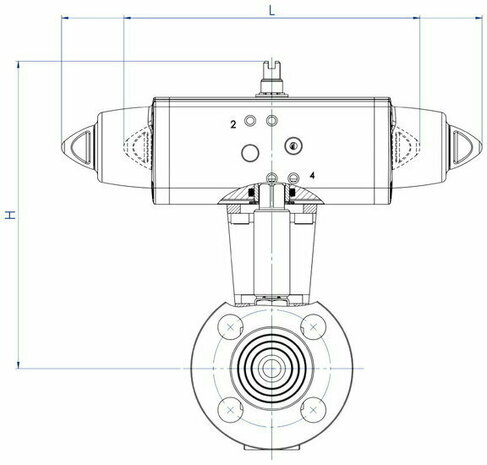 V445 ,rvs , Ball Valve- valve,pneumatisch bediend,DA, - G4 - DN100 / PN 16