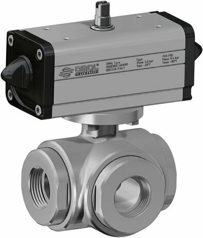 V450-V451 ,RVS , Ball Valve- valve,pneumatisch bediend,DA, with L-ball valve - G1 - DN25 / PN 40