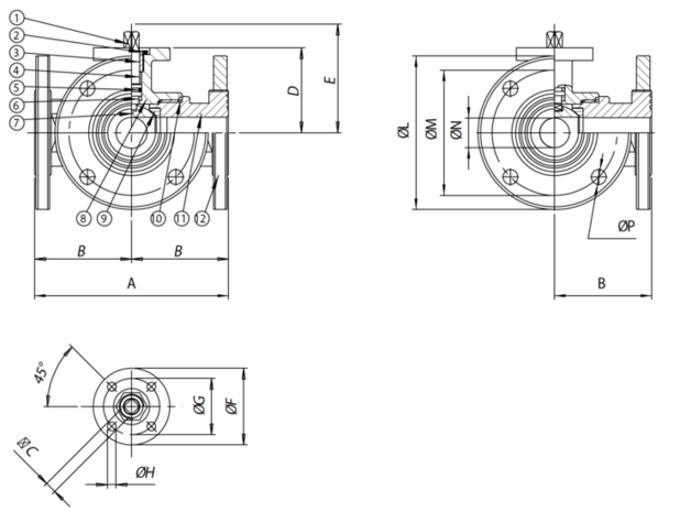 V460-V461 ,RVS , Ball Valve-,free shaft, ,T port ,- G1/2 - DN15 / PN 40