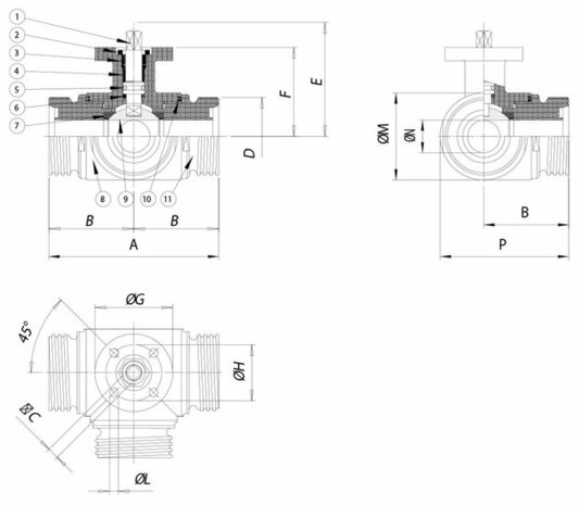 V464-V465 ,rvs , Ball Valve-,free shaft, ,L port ,- G1 1/4 - DN32 / PN 40