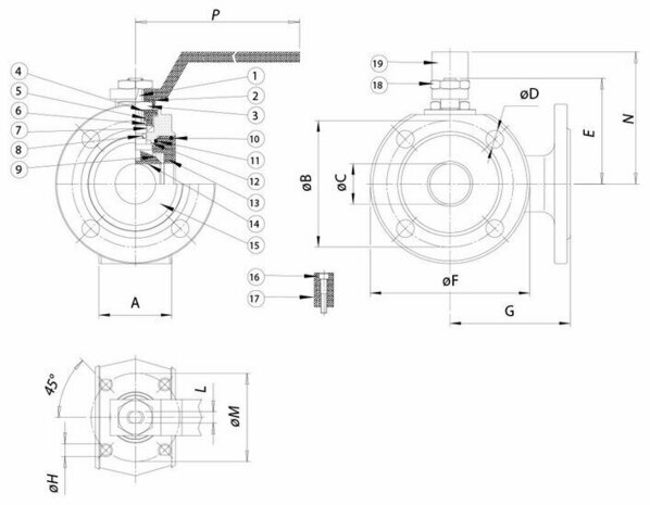 V545 carbon steel, A105 Ball Valve-,hand bediend, - G3 - DN80 / PN 16