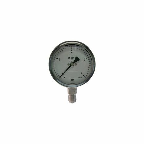 Manometer geschikt voor stoomBestaande uit:• Manometer - Glycerine gevuld • Syphonpijp RVS Spansok• Afsluiter Spansok RVS