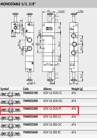 - SOV C6 SOS PC - Ventiel 5/3 - 3/8'' Electr. M.