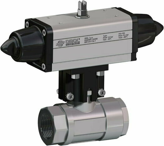 Compleet gemonteerd Inclusief SRN0015401S pneumatische actuator — veerretour (spring return): bij luchtuitval keert de kraan automatisch terug naar de veiligheidsstand.
